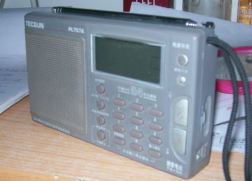 这些年又陆续买了一些收音机:德生9700DX,GREEN-88.BCL2000,PL757A.德劲1101.现在手里只有737(已收藏了)BCL2000和PL757A了。这是我02年买的757A。