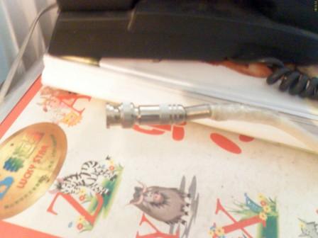 前段时间regitowt老兄做了2个天线,分别是半波偶极和maxon天线,我才发现原来FM天线的做法是如此简单(regitowt老兄的文章见http://bbs.tecsun.com.cn/0002.asp?open=32446&w=608,另外maxon天线的制作方法请大家自己搜一下)。但是苦于没有材料,而且不想花钱,于是请装修的哥们帮忙,帮我搞了2条3米的16方的多芯铜线。经过漫长的等待(7天呀,人生有多少个7天呀),昨晚终于来了线材。因为半波比maxon更容易固定,而且据说方向性要求不高,于是立刻动手做半波偶极天线。用老虎钳把线夹断成2条75mm长的线,找了根竹竿绑起来,然后用以前广电宽带送的75欧同轴线接上去。也来不及用电烙铁,直接用铜丝把1条线75mm长的铜线绑在屏蔽层,同轴线的内芯插入另一条75mm长的铜线,当然还不忘把同轴线绕4个圈来做balun,我的98MHz偶极天线完工了。