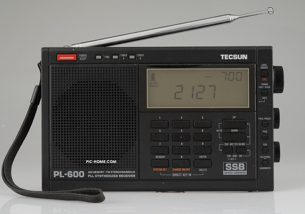 第六台,德生PL600。很不错的一部机器!的确,这是一部能使我抛开玩机的感觉,把注意力放在广播本身的机器(也可以理解为缺乏可玩性,哈哈),飞梭+分页储存+直接输入频率,配合起来使用非常方便,说实在的,我觉得这部机器比7600G好用,至少用起来方便很多。当然了,缺点还是有的,音调调在BASS声音还是偏单薄,调在高音当声音发尖,按钮没背光,晚上用起来非常不方便!这可是个大缺点。