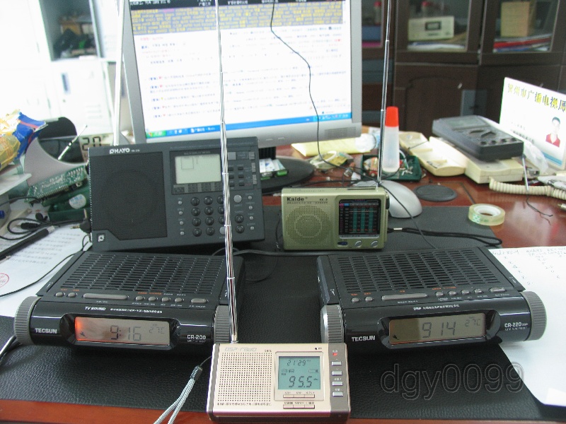 环境:办公大楼三楼中间位置,六楼顶有105.6MHz频率300W 的贺州综合广播调频发射。距95.5MHz1KW两公里,距其他频率30公里左右。上方有日光灯,有电脑开着。