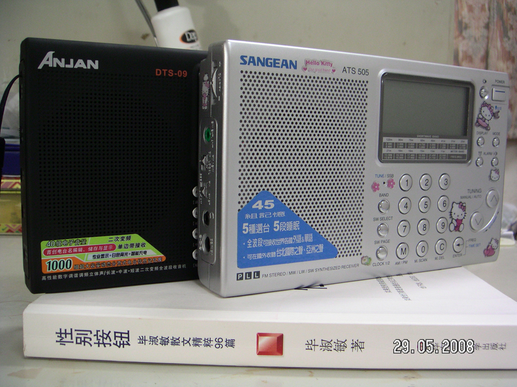 想当年,看了众多网友对YB400PE的音质给了很高的评价,我从南霸天那里弄了一台YB400PE,初一听,声音真的很不错,穿透力强。可能是个人原因,在用了一段时间YB400PE以后,总感觉其声音总体上偏软,听着想睡觉,于是拍好照片后就出了。再一次聊天中得知山进的ATS505停产了,于是弄了一台,本来想藏着日后再使。试了一下机,乖乖,真是无心插柳,发现了宝贝,这声音不就是我最喜欢的那种类型,铿锵有力,还原度高,蓬蓬入耳,正好和YB400PE的“软”形成鲜明的对比。于是在很久的日子里,都用其来收听调频节目,特别是103.7MHz(上海)LoveRadio时,每首老情歌旋律响起,可以让你缓解疲劳,振奋精神,发出感慨:原来便携收音机的声音也可以那么的好。