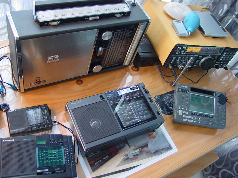 PK方式很简单,不记频率,不确认内容,采用完全模拟方式,基本是闭着眼睛不看度盘做的,在中波段从高端到低端或从低端到高端缓慢旋转调谐旋扭,SW55是按步进键逐级扫描,不论是否有杂音,以能确认有广播电台或者感觉到有广播电台为准记一个数,中波段会有很多干扰,这种完全只有杂音的信号一律不记数,有些选择性不好强台覆盖到旁边频率的扣除,有些时候同样是不明确信号因为主观原因会有判断差异,因此每台收音机的数字都有一定误差,只能从大的方向看趋势,况且有时候并不是收台越多越好,即便如此,仍然可以据此判断出各台收音机在中波的表现差异.