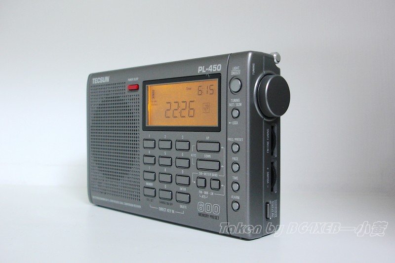 TECSUN PL-450型收音机是今年德生电器推出的一款真正意义上集接收民用LW、MW、SW、FM信号于一体的全波段数字调谐便携式收音机,该机为德生PL-350收音机的改进机型,机壳模具与PL-350相同。