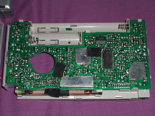 电路板北侧图(电池仓方向)--电池仓内序列号,生产日期、地点,reset按钮,中波步进9k/10k选择键。