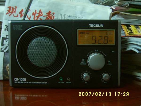 CR100的调频就很不错了,第一批的不输给PL350,CR200都是那个软塌塌的天线害的,否则是与CR100一个水平。CR1000则大踏步稳定提高,各位在我的图片中看到的频率92.8就是邻市的电台,同样的位置几乎不要调整方向,而CR200 、CR100则需动动天线的方位。