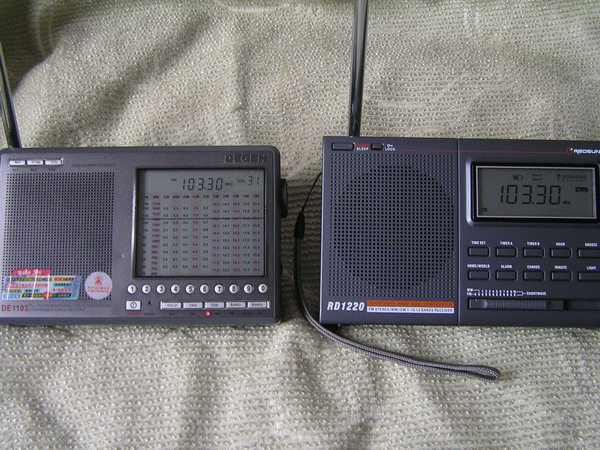 言归正传,对比机型就是用DE1103,与RD1220。在调频段分别接收了89.7兆赫的黑龙江音乐台,106.9黑龙江交通台,101兆赫的远地转播的黑龙江交通台,感觉RD1220调频效果很不错,选择性比我原来的RF1210要好,不管强弱台,灵敏度感觉与我对比的DE1103相同,对比结果RD1220=DE1103。