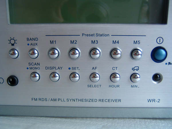 SANGEAN(品牌:山进)出品的数字式2波段广播收音机,机器型号:WR2。可接收:调频FM-RDS(频率范围:87.5MHz~108MHz)调幅中波MW(频率范围522kHz~1629kHz at 9kHz/step or 520kHz~1710kHz at 10kHz/step,前者适合我国国内制式)。