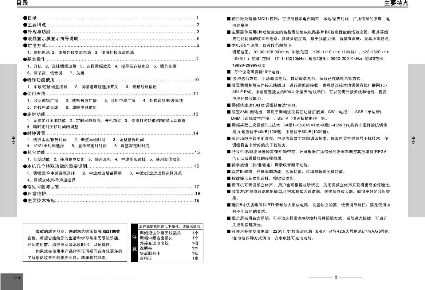 ■全波段数字调谐(PLL)收音机,使用微处理器(MCU) 控制,可控制显示电台频率、本地/世界时间、电池容量、广播信号的强度。