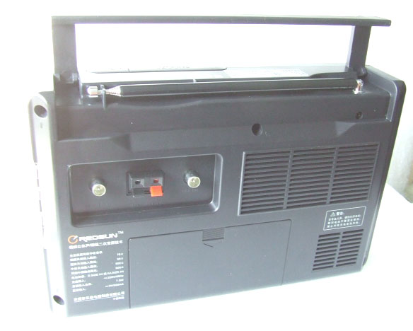 但是如果当你真的拎在手上散步时,你就会发现提手感觉很单薄,如果你也是像我一样用4节一号充电电池的话,你更会发现,在收音机和4节充电电池的重量下,这个提手好象随时会折断一样。