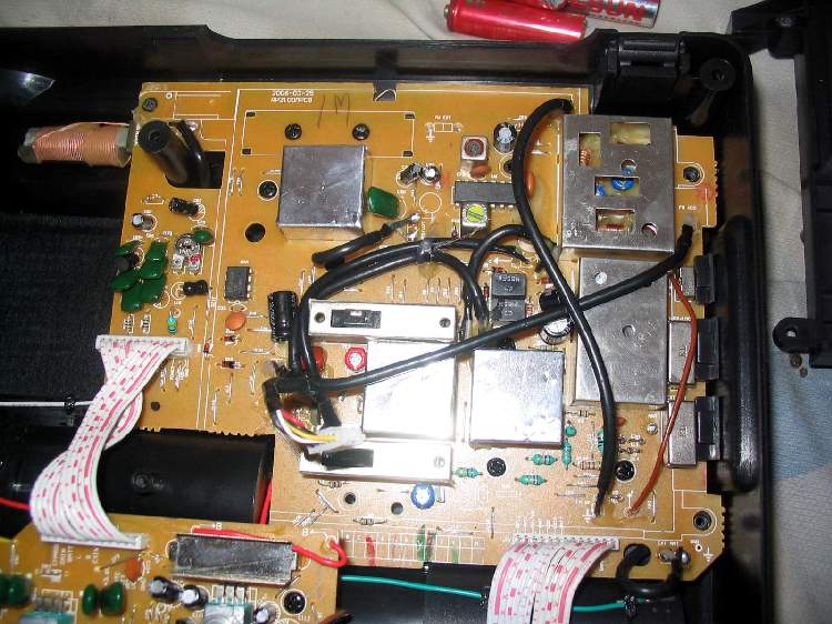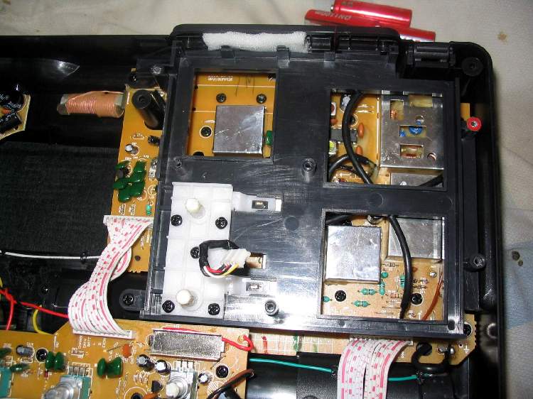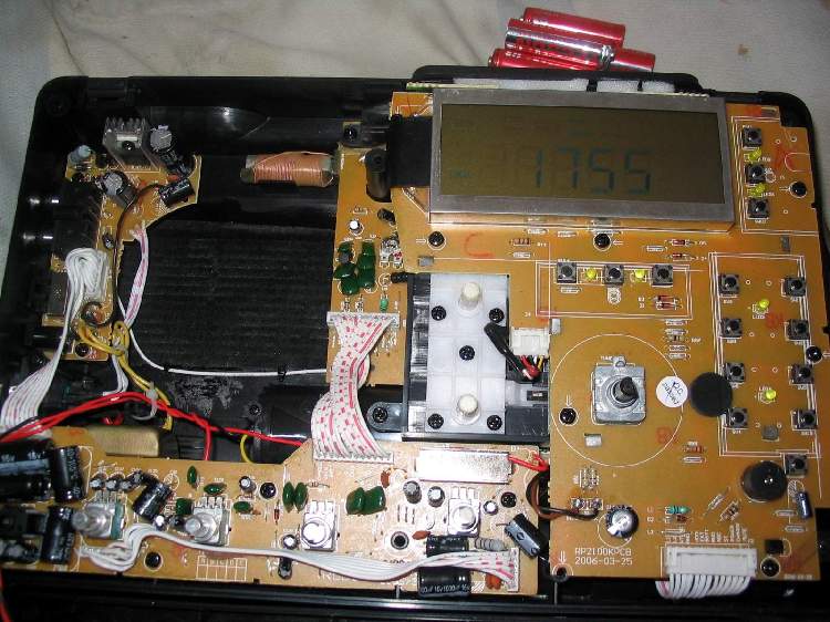 2、机械结构,2100与BCL3000/2000一样,是前脸开盖的,喇叭固定在前面板上,底盖象个盒子,主线路板在底盖底部,上层是数字调谐MPU和操作按钮板,音量、音调等控制和功放在另外一块线路板上,波段切换采用了2个四掷机械开关完成调频/中波/短波1-3共五个波段和调频立体声/单声、调幅宽带/窄带的选择和切换,开关传动结构也跟BCL3000/2000相似。