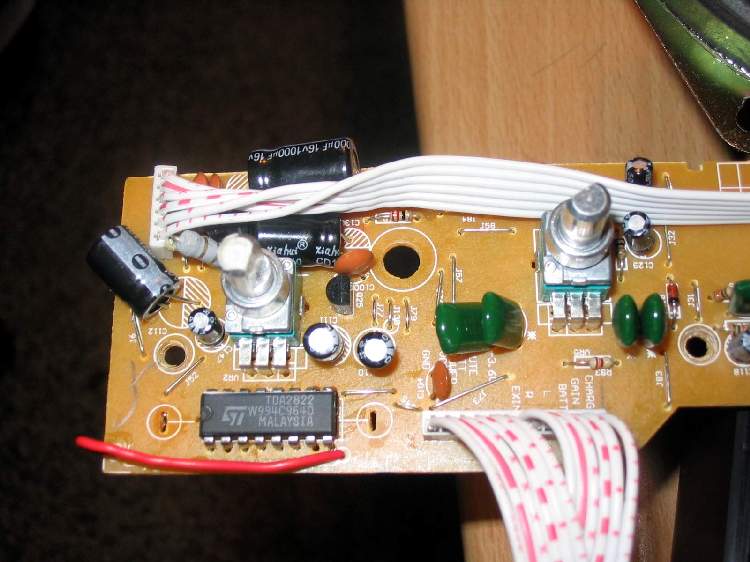 3、线路结构,因为时间关系,拿到机器时间不长,因此这方面有待于进一步“研究”,但拆开机器的时候,看到电路板上的一枚LA1260使我想起一件事情,在广播爱好者论坛上,xyz^^曾经说过想利用二次变频技术改造BCL3000/2000,以克服BCL3000/2000频率飘移问题,记得他当时还画了一张示意图贴在广播论坛上,因此看到这里我大胆猜想,此机可能与xyz^^当初的设想有异曲同工之处!此机据说也属于高中频的二次变频技术,这跟xyz^^擅长的又极其相近,莫非这个机子跟xyz^^有关????在低频方面,此机也是跟BCL3000/2000一样采用TDA2822构成的BTL功率放大器,只不过2100采用的是16个脚的IC。