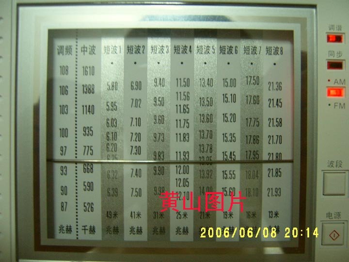 III.最近的邻市电台:88.1(巢湖)88.7(铜陵文艺) 92.8(马鞍山交通)105.1(马鞍山人民)1107这几个频率均能清晰稳定接收。9700DX 能接收到88.1(巢湖)92.8(马鞍山交通)105.1(马鞍山人民)这三个频率,而9510只能接收92.8(马鞍山交通)还要不停移动收音机方位。