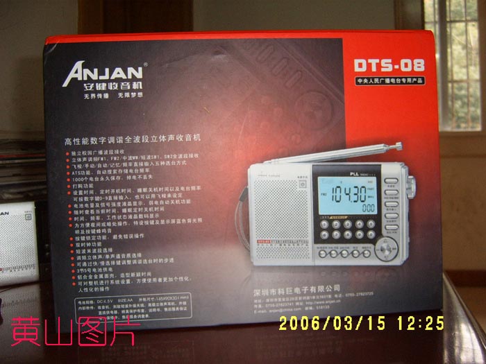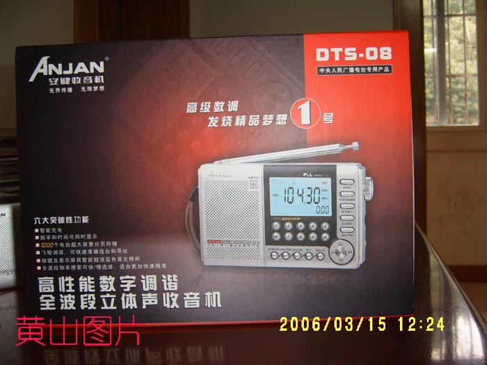 中午收到DTS-08,到家后立即装电池使用,发现DTS-08(梦想1号)高、实在是高,尤其是调频性能绝对达到了DE1103的水准。