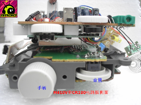 6.机器的手感,调谐扭,M410V是使用飞梭设计来调谐的,比德生的圆形拔盘强多了,音量电位器,德生的拔盘太小了,并用螺丝固定,怕时间久了,有偏心之虞。M410V是套在电位器主轴上的,手感不错。机器顶部按键,德生的感觉硬了少少。