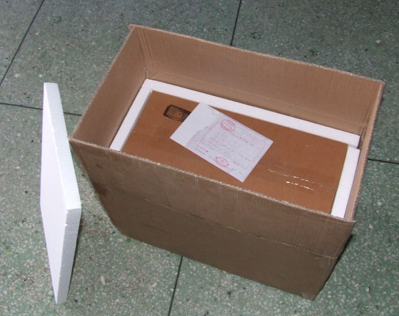 外纸箱里是全包的泡沫板,包着内纸箱。