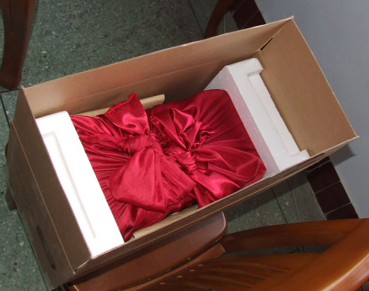 只用一根小红带扎上降低了身价,最好单独给出生证一个小包装盒,显示精品的尊贵。