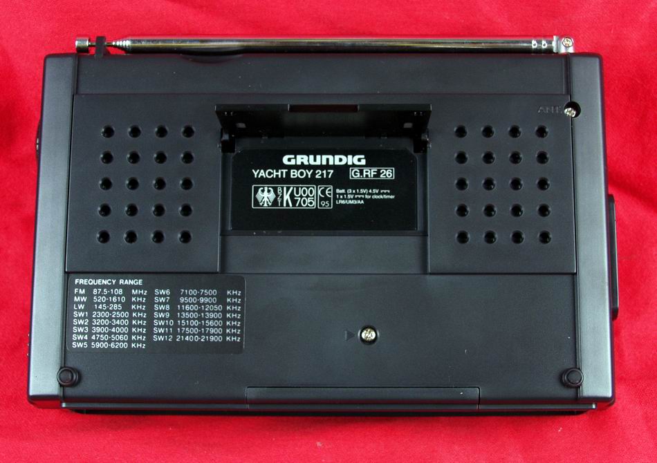 注:机机的频率指示窗用手往下按有松动的感觉,害怕开大音量时会有机震现象,同时指示窗有划伤,库存机也有划伤吗?。音量电器推式的,和9700DX一样,不喜欢。波段转换比9700DX好,FM、MW、SW、LW共用一个开关,SW123456789101112共用一个开关,这样好,9700DX、1107都是一个开关,波段转换不方便。217的调谐钮比较小、薄,不爽,还是1107来的爽。先写这么多,见议版主加精。