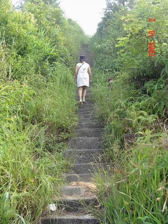 1、首先当然是登山啦,女朋友一马当先,好有胆量和魄力啊,阶梯是用水泥打好的,上下都方便