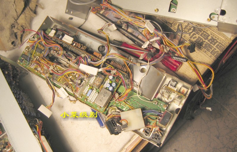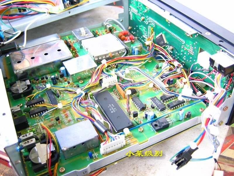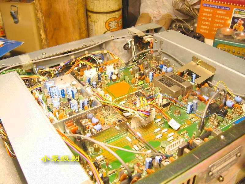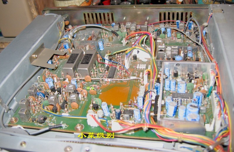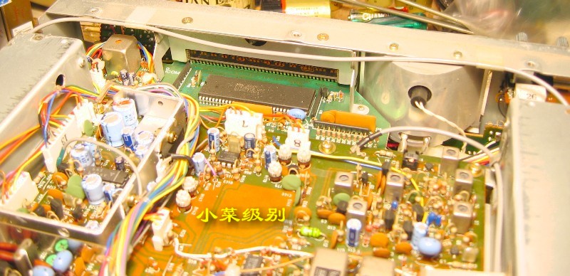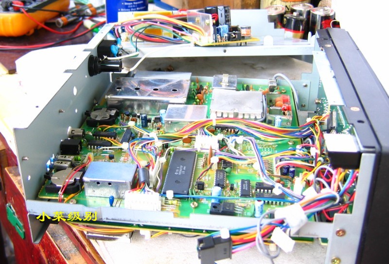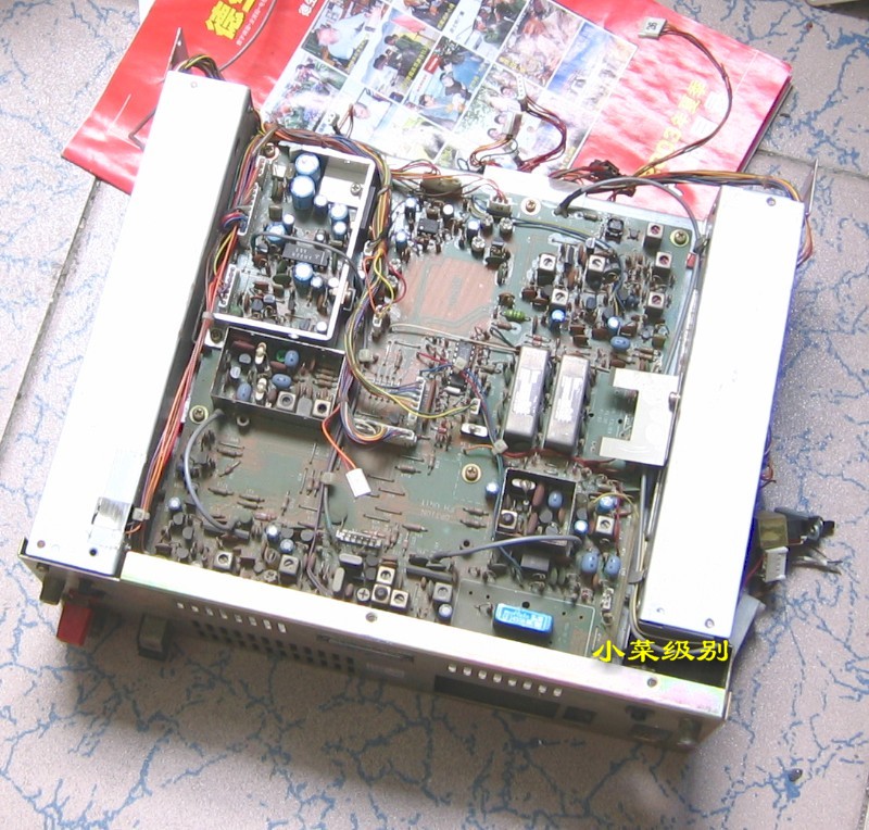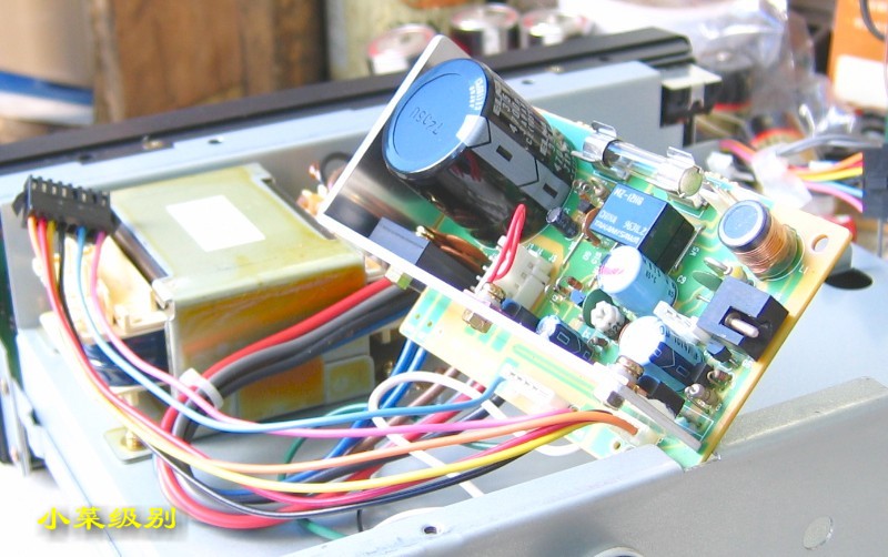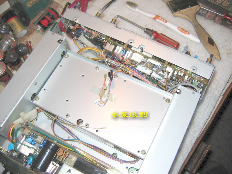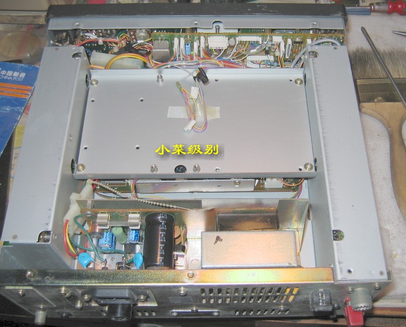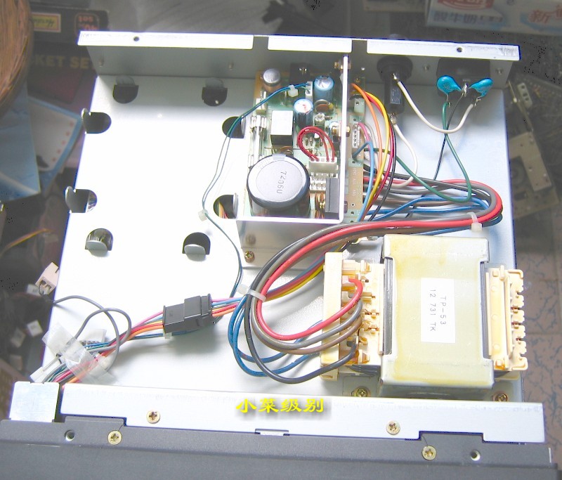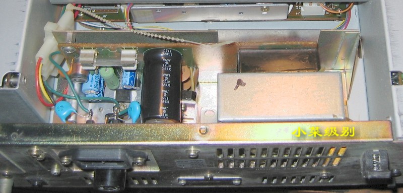 R72E开了上盖后显露出来的是第一层--电源部分,这样的设计真的该打!变压器放置在前部远离散热窗,昏!!后部左侧是放置内置可充电池的。
