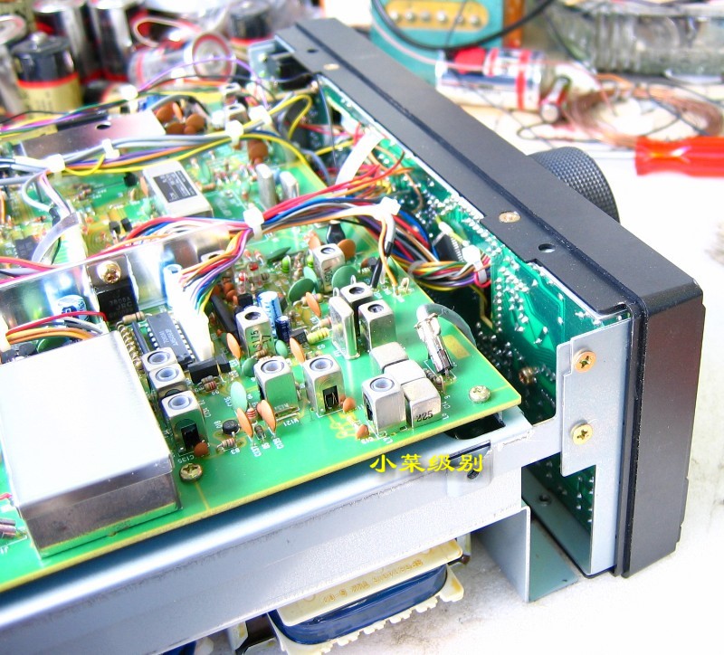这是71E的音频增益和前置增益组合旋钮,第三张表现的是完好的音频增益和前置增益组合旋钮(左)与音频增益失灵的组合钮(右)。R71E由于在原单位用得很“狠”,甚至也可以说是小日本的不老实,它们的旋钮有些会失灵,一些是使用者的粗暴使用所致,而有些则是出厂的时候就这样,去年有台全新原包的R71E就是音频增益钮失灵可以360度旋转。当时由于胆子不够大学技不好,不敢开机检查,所以就原样转让了,现在想找原包的也没这个店了,这是典型的菜鸟行为啊,其实恢复起来很简单的。