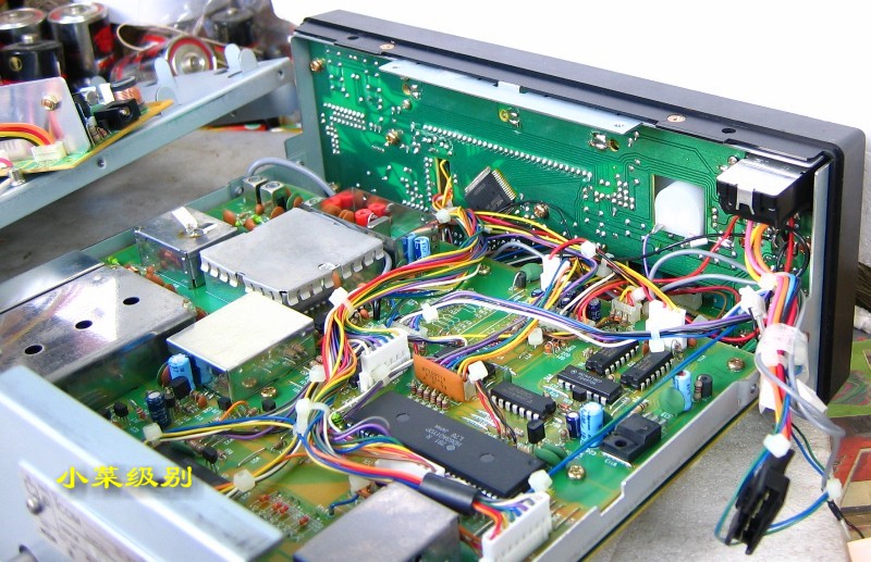 这是出厂编号在1万号以下的机器,可以看到天线输入部分没有屏蔽罩,面板后的IC是两个。