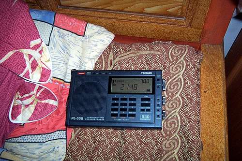 然而,听了一段时间以后,这些老收音机和B2K都感觉体积比较大,被窝里不好操作,因此又改用PL550了,使用了一段时间,慢慢体会到PL550的中波灵敏度非常不错,噪音也低,声音也好听,特别是感觉好调台,设定中波9KHz步进,飞梭慢慢转一下就一个台,接收频率保证准确,不必想老收音机和B2K那样,调台要慢慢前后转动选钮使声音清晰为止,所以使用起来特别方便!