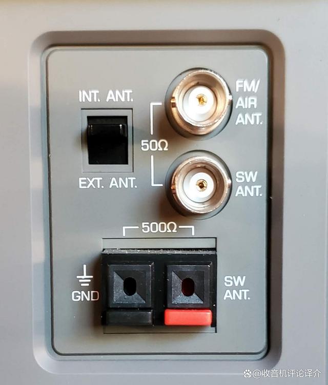 外接天线设备非常完善,调频、航空波段、短波均采用低阻抗BNC连接,短波采用高阻抗和低阻抗输入,中波、长波使用3.5毫米插口。此外,在任何波段都能断开自带天线。上述三档天线衰减器和可变射频增益旋钮也有助于使用外接天线。