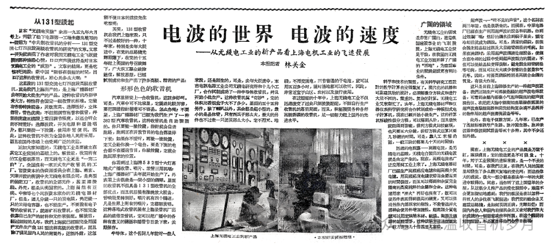 其实,131型收音机在我们上海来说,只不过是较好的一种,十年来,特别是去年大跃进中,在党的总路线光辉照耀下,在党的十五年赶上英国的号召鼓舞下,广大职工群众破除迷信,解放思想,已经试制成功和生产出了许多高级、精密的产品。