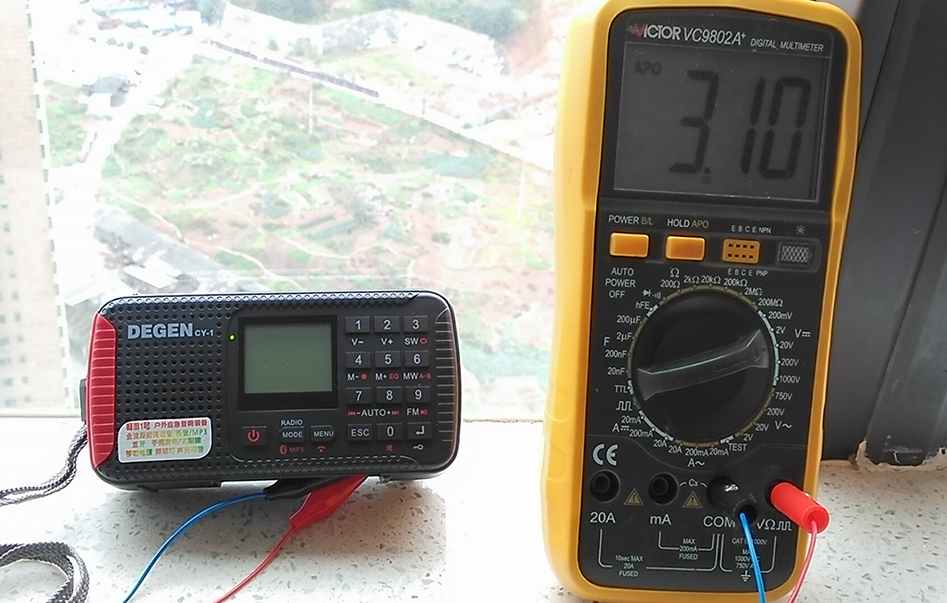 同时发现个怪现象:取掉电池从电池仓接点测量,太阳能电压本身能达到3V多4V,当短接触点放电后,比如测量一下电流,电压降下去后,无论怎么光照,电压都在2V左右再起不来了。这时摇一下发电手柄使电压起来后,太阳能的电压又能恢复起来了,有点奇怪。