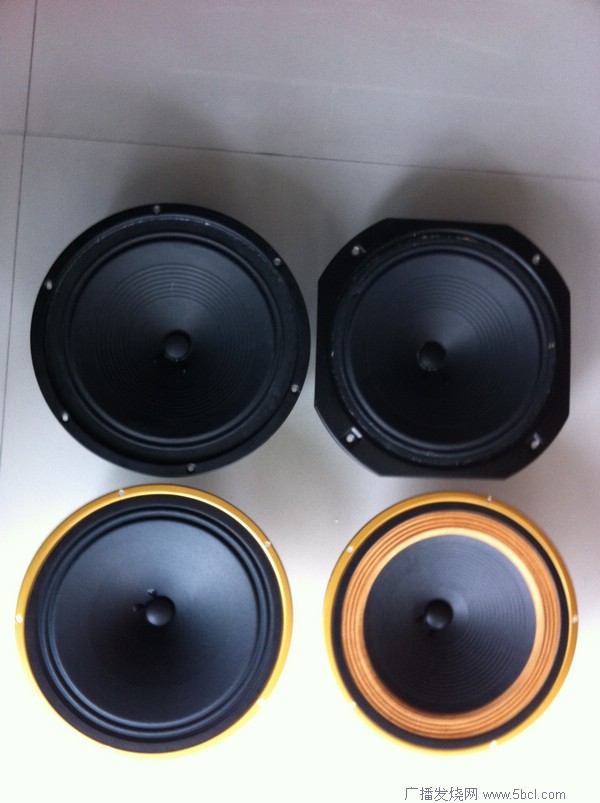 首先是喇叭的选择。高音扬声器单元已经选定博良的301和绅士宝的9500,剩下的主要就是中低音单元的选择了。在“寒”文中已经指出要选用采用“纸盆”做鼓纸的扬声器,由于现在纯纸盆的鼓纸生产厂家不赚钱,找到好的还真是很难,找了几家都不理想。