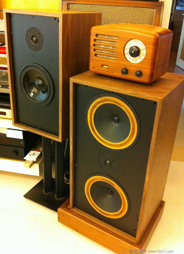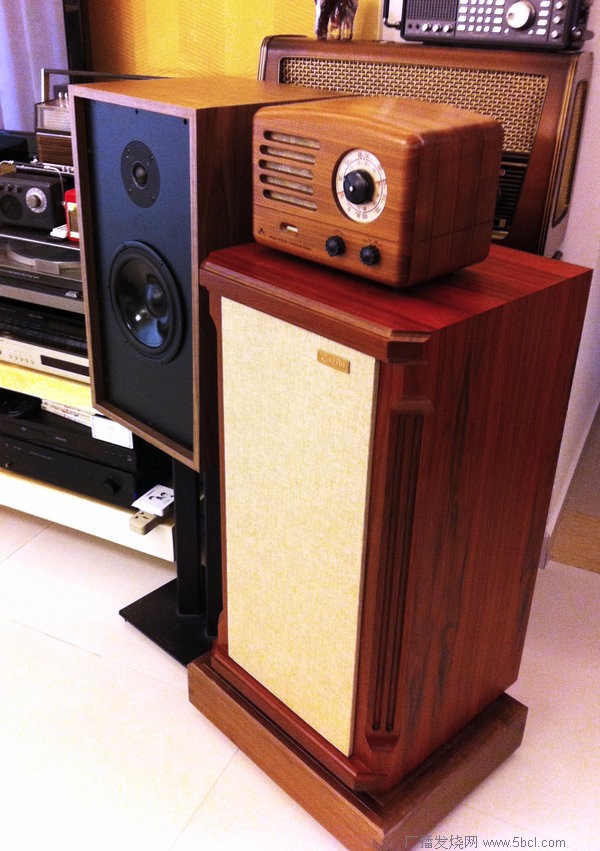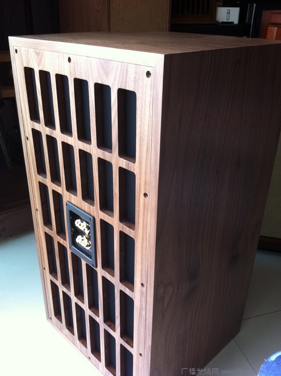 在设计音箱过程中,我做半开箱的想法虽有创新,一些朋友愿意接受,但有的朋友也许愿意选择一对相对传统的音箱。为此,根据801音箱的设计原则和自己以及朋友的经验,我们另又设计了一对传统倒相音箱。这对音箱的设计风格为典型的的“英国声”,声音风格与英国的harbeth“雨后初晴”HL5、 Rogers 5/9 和Spendor S100基本一致(这三对箱子我都曾经拥有),我们的这对箱子箱体容积较大,并采用了西雅士的纸盆喇叭做中低音喇叭,高音采用绅士宝的D9500。因此声音基本具有HL5、5/9大气、更松软的风范。这对箱子搭配801的功放(也可配其他胆机或晶体机),表现也相当不错(低频的风格与新设计的半开箱区别还是比较明显),应该说其性能和聆听感受不会低于市场上1.5万元左右的进口类似风格的音箱。