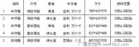 几款不同设计和采用不同喇叭单元的R801音箱的参数指标: