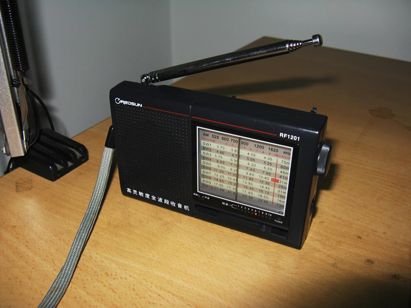 2011 年05月26日入手乐信rf-1201, 买它的动力来自与我对短波收听的渴望,买前在网上读子大量的不同收音机爱好者的机评,有一次在网上读到一篇网友参观乐信工厂所写的博文,图文并貌的,其中特别提到这款机是为日本代工生产,在日本出售过。乐信的收音机产品线不如德生那么庞大。个人感觉乐信的收音机产品线是少而精,虽然没有特别高端的,但也没有特别差的,其中也有不少能和德生比一比的产品,比如在大个头适合大众消费的乐信rp2100就把德生的 bcl3000在接收性上比下去了,而且乐信的一款三防收音机还出口给俄国军方。另外具有传奇色彩的rp3100也一直雪藏着使其追随者抓狂,所以乐信的机子在某些方面还是有一定实力的。在使用乐信rf-1201的过程中,我主要是用来听短波,本来以为这么廉价的便携收音机短波收听肯定不会很清晰或者收台肯定比较少,但想只有三十几元,就算收听不到也损失不大,抱着试水的心态,结果没有想到从入手到现在他已经成为我听短波的每天必须要抚摸的爱器(不是爱妻啊,哈哈)。每天下午5:30到6:30的法广中文广播接近调频效果,信号很强和稳定,晚上九点到十一半,外国的中文广播更是层出不穷,我也是如果晚上没有其它重要的事,九点到十一半间,在小区边步行呼吸新鲜山里吹来的新鲜氧气边听短波。到现在已经减肥二十斤。没有此机的陪伴我是绝对不会减掉这么多肥肉的,真是意外的惊喜。从五月到现在我用这款收音收听到的外国中文广播如下(★的个数为收听效果打分,越多越好):