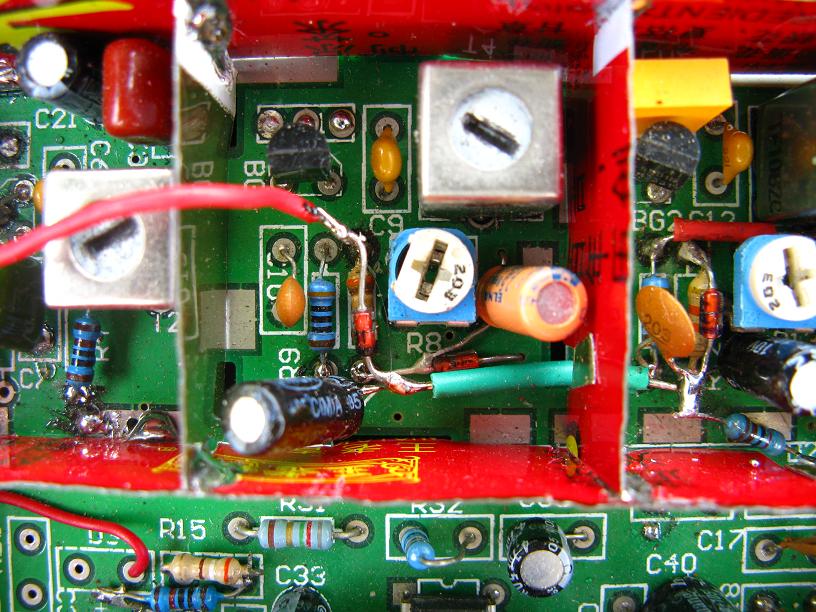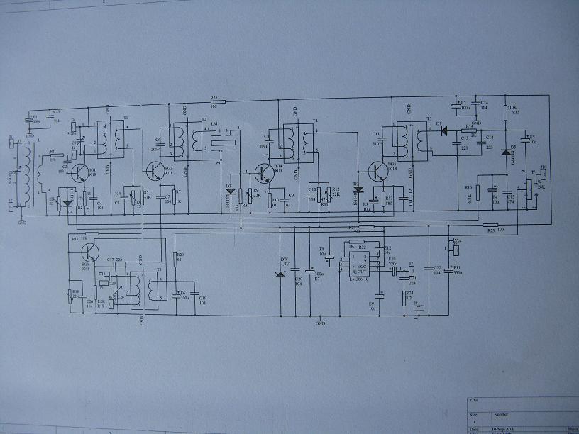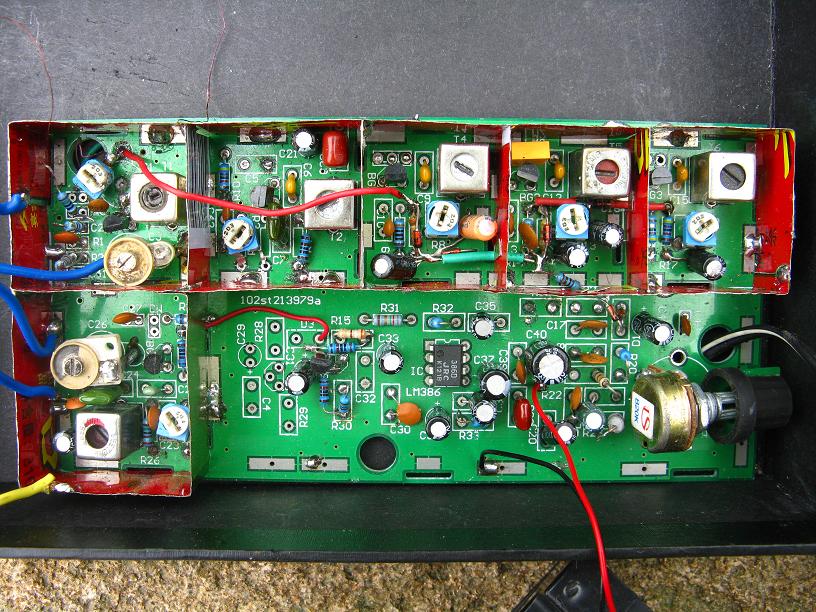通过这次做短波使俺对自激又有了更深的认识,自激俺现在是把它人、分为两种:一种为整个电路自激,这种自激为生的原因多是退耦不好,可以加强退耦,如增加退耦器件,改变线路走向,特别是电源线路的直向。一种为部分电路自激,该自激只是限定在少部分相关性很强的元器件之间,是该电路内部反馈所引起的,如俺上面的高放自激就是属于这一种的,那就要想办法阻止,一开始用了好多方法,就是不见效果,如在高放线圈初级并电阻,改变匝比,加负反馈电容,换内反馈小的晶体管,都得不到好的效果,只能减轻。最后没办法了,停了一天,第二天清早还没起床,突然灵感来了,自激不是正反馈过强吗?别的地方不行,在输入端动行不行呢?在分析了可变,磁性天线和高放电路连接情况的特点后,改变了天线次级接入方式的同时再加一个隔离电阻,效果立马为生了,高放工作十分的稳定。
