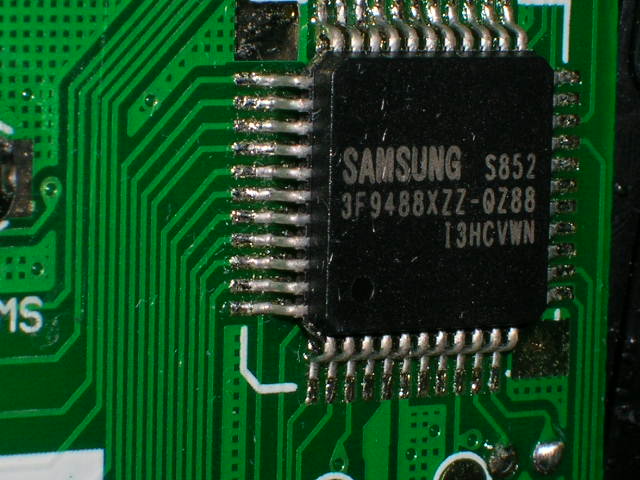 主要的芯片都没采用鸡屎塑封,这点很好,但有些焊点还不够漂亮,多处有焊渣模样出现。工人的手艺问题。