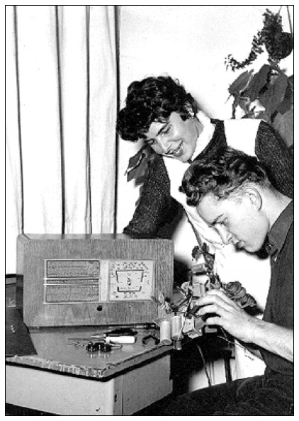 最后一幅照片,是当年一对德国青年正在仔细装调 HEINZELMANN 收音机时的情形。从那轻松自信的表情上看,大概马上就要成功并听到迷