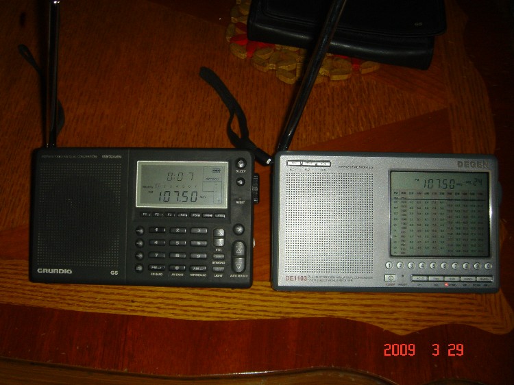 G5 大小与1103一样。最大的不同是脸面和操控不同,侧面及后面一样。AM中波接受效果两机一样。