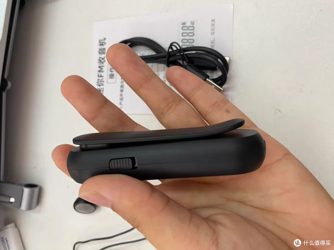 迷你fm小收音机可充电fm波段76-108,标配带耳机充电线,不能外放只能接耳机听,尺寸884711mm.音质好,尺寸小。