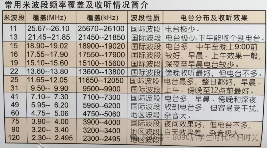 3、长波(LW):频率较低(150-284kHz),传播距离远,但目前民用广播较少使用。