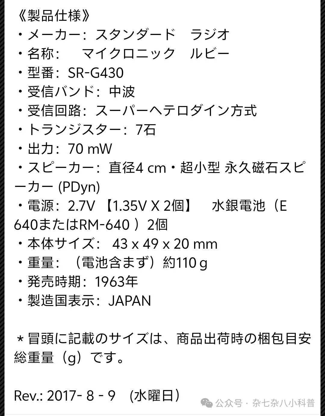 标准牌Standard SR全系最小型号是SR-G430收音机(Micronic Ruby红宝石系列),这可是由官方来背书的!