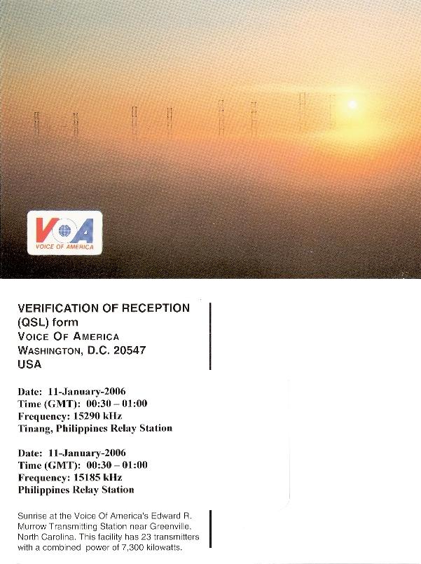 第二张(我唯一的一张实寄的QSL卡)