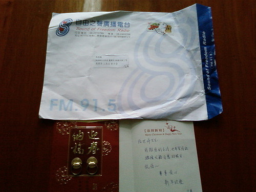 ▲台湾ZY之声广播电台百惠女士的贺卡;