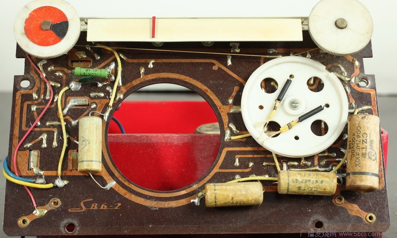 珠江SB6-2型6管便携机,虽已进化到印刷电路板阶段,双连、中周都已小型化,却依然没有从“两面装”的初级模式中解脱出来。