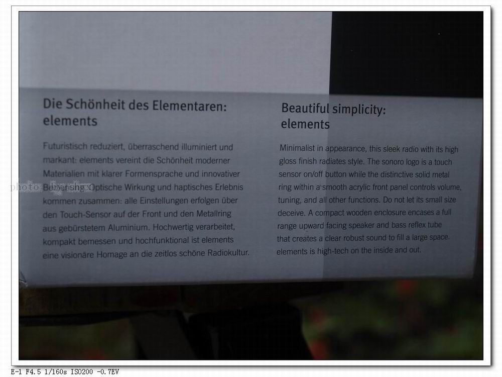 外包装上德文和英文的简要特质说明