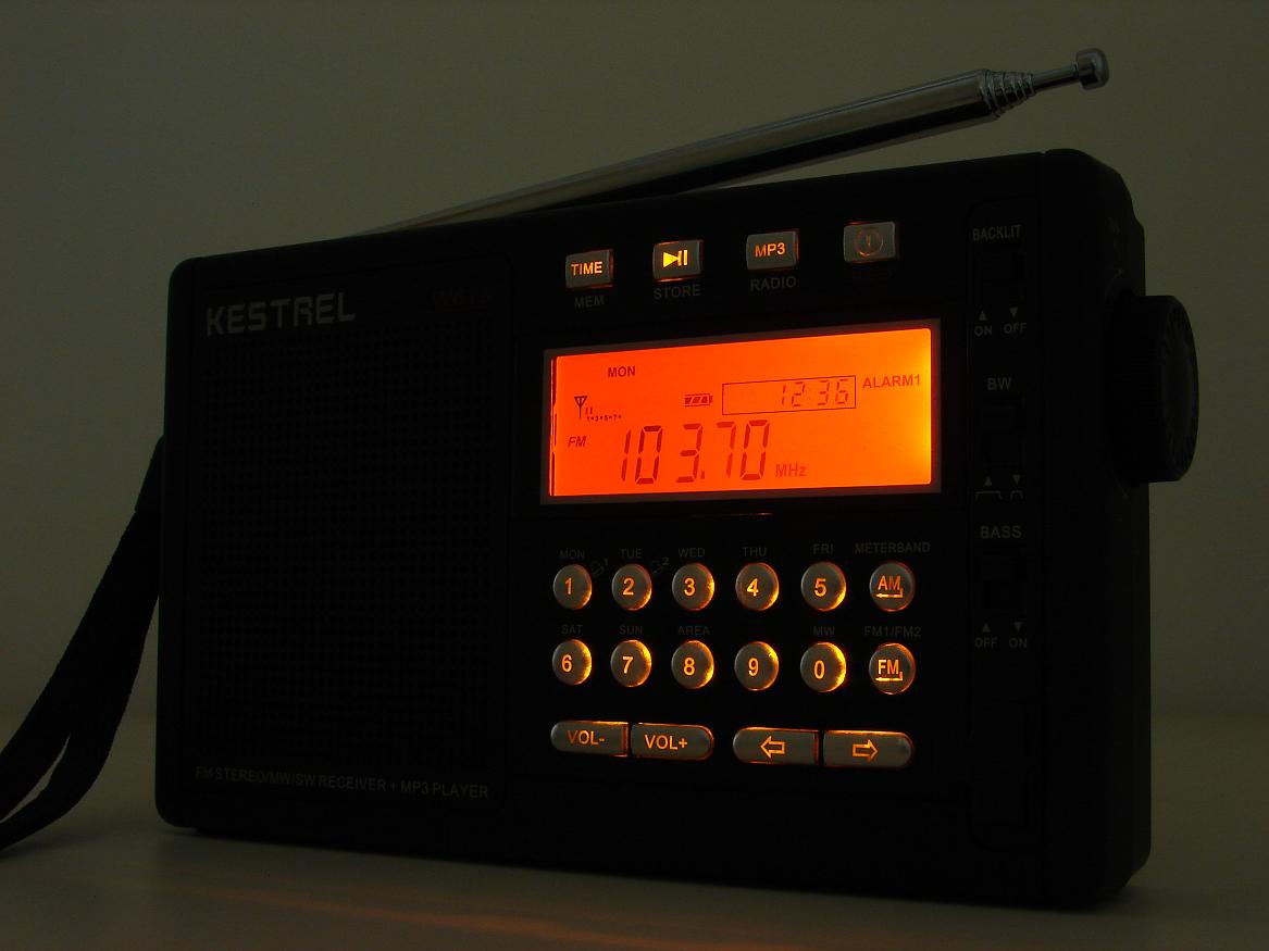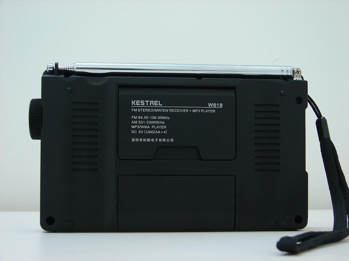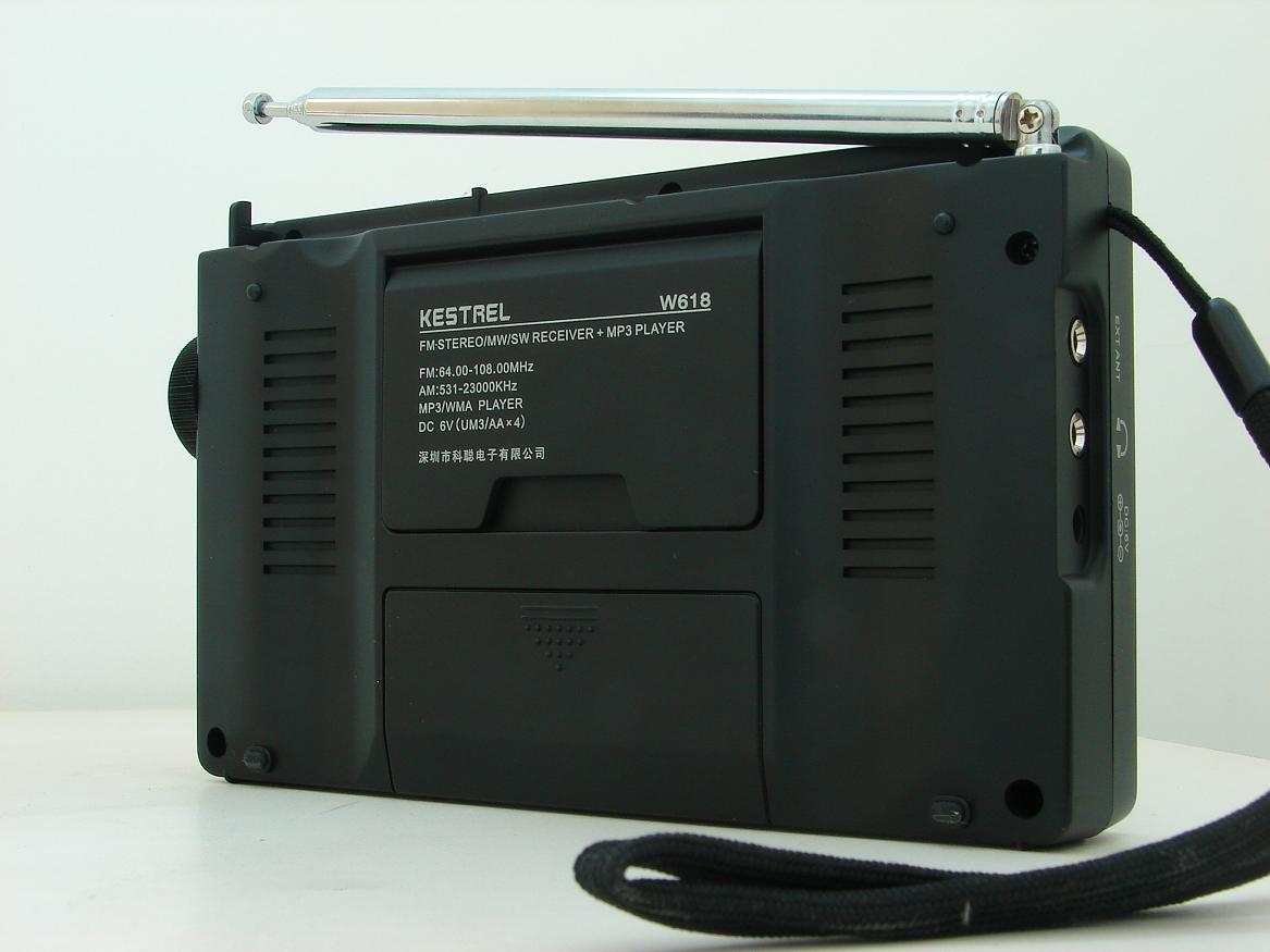 到手初步印象,科聪的周老板是白手起家,第一部稍微有点份量的机器用了老东家的磨具,附件很少,机器表面还不够精细,感觉能节俭的地方尽量简单,但机器绝对有卖点,就是不高的价格提供了MP3的功能,在市场上还鲜有与之竞争的机器,看看德劲DE1121的人气,还有那个国内绝种的DE1122,周公很好的找到了市场的切入点,在这上面我感觉他是成功的.机器设有按键背光,还有手动选择的显示屏背光开关也很实用,DSP数字解调机基本的功能都具备,调频接收一如既往的强悍,音质偏向高音,低音没有DE1104和DE1107那么厚重,MP3回放还没试,还要好好看看说明书,"看样子还要准备个8G的盘才能装得下这棵葱",哈哈,最后一句话,机子对得起这价。