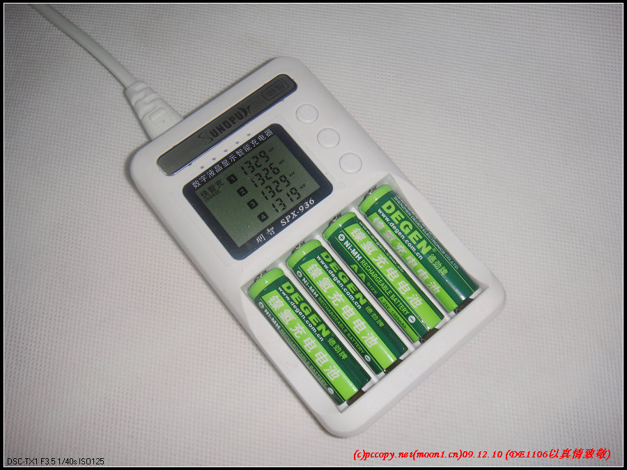 德劲依然配的是1300mAH的镍氢电池,与我以前买的第一版1103的一样(btw:我的1103因我被木头的运放门诱惑搞试验,至今仍为能装回去),将使用明智充电器充电。因为我的几排“爱老婆”电池不够用,这个也要上岗了。