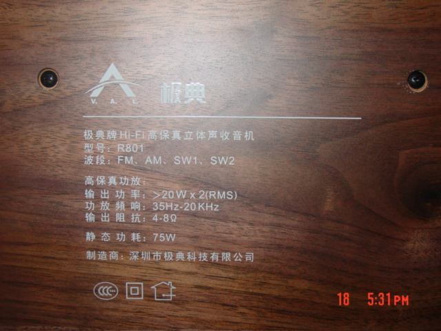 花了俺大半年积蓄购买的极典牌R801超高级收音机终于收到了,呵呵。