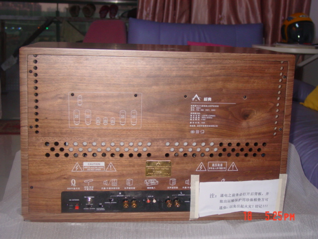 看到了白色的泡沫板,卡的还挺紧的,抽出来还有些费事,我真担心我把电子管的座儿给弄松了。还好,还好……来不及欣赏里面的东西了,听机为上!装好后背板吧。