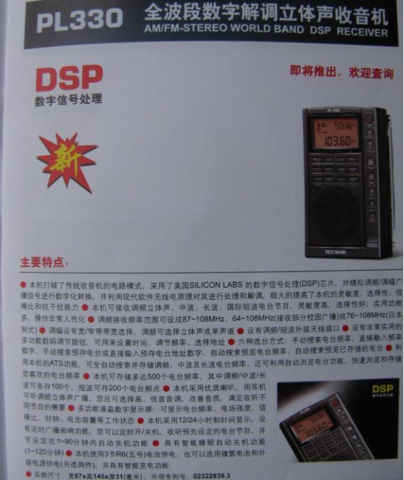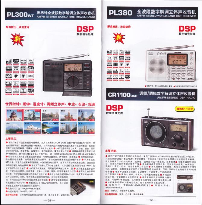 收音机 德生09版产品目录,即将上市的新机器 广播发烧网 2009-05-05 00:00 · 2029 0 S2000介绍。 PL210,PL310,PL330。 PL300wt,PL380。 PL210 PL310 PL330 PL380 PL300wt 点赞 0 文章目录 × 推荐阅读50~70年代国产收音机的几款经典机型中国收音机百年史SONY 最后一台高端全波段收音机的前世今生浅谈收音机的百年发展历史固件版本为078版本的山进909X2收音机的整体表现不错国产古董级晶体管收音机——东湖牌收音机新机亮相--德劲DE1108小米LED灯下的德生PL-230德生PL-330拆机高清大图从上海滩起家的中国收音机100年史,背后是集成电路的发展史 上一篇 国内广播短波频率A09 下一篇 德生PL300WT万用表收音机