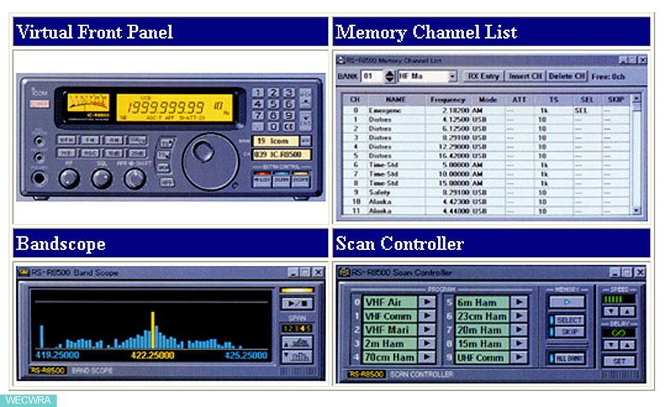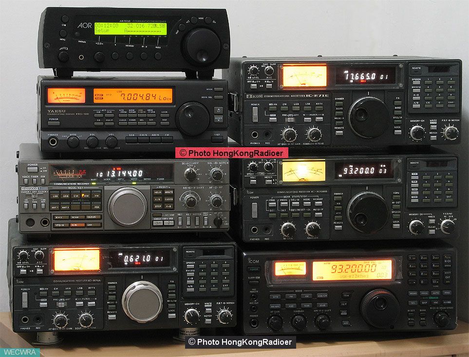 左上至下:AOR 7030, YAESU FRF-1000, KENWOOD R-5000, ICOM IC-R71A